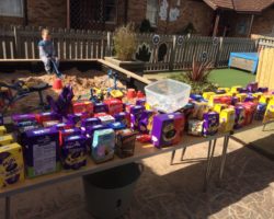 The sun was out this Easter to help launch our tombola – A busy morning ticketing over 250 eggs and an even busier afternoon raising over £300.